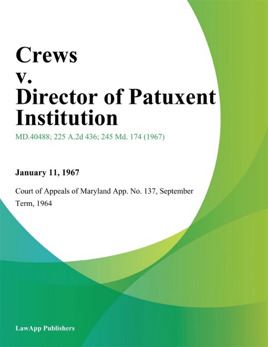 [Download] "Crews v. Director of Patuxent Institution" by September Term, 1964 Court of Appeals of Maryland App. No. 137 * Book PDF Kindle ePub Free